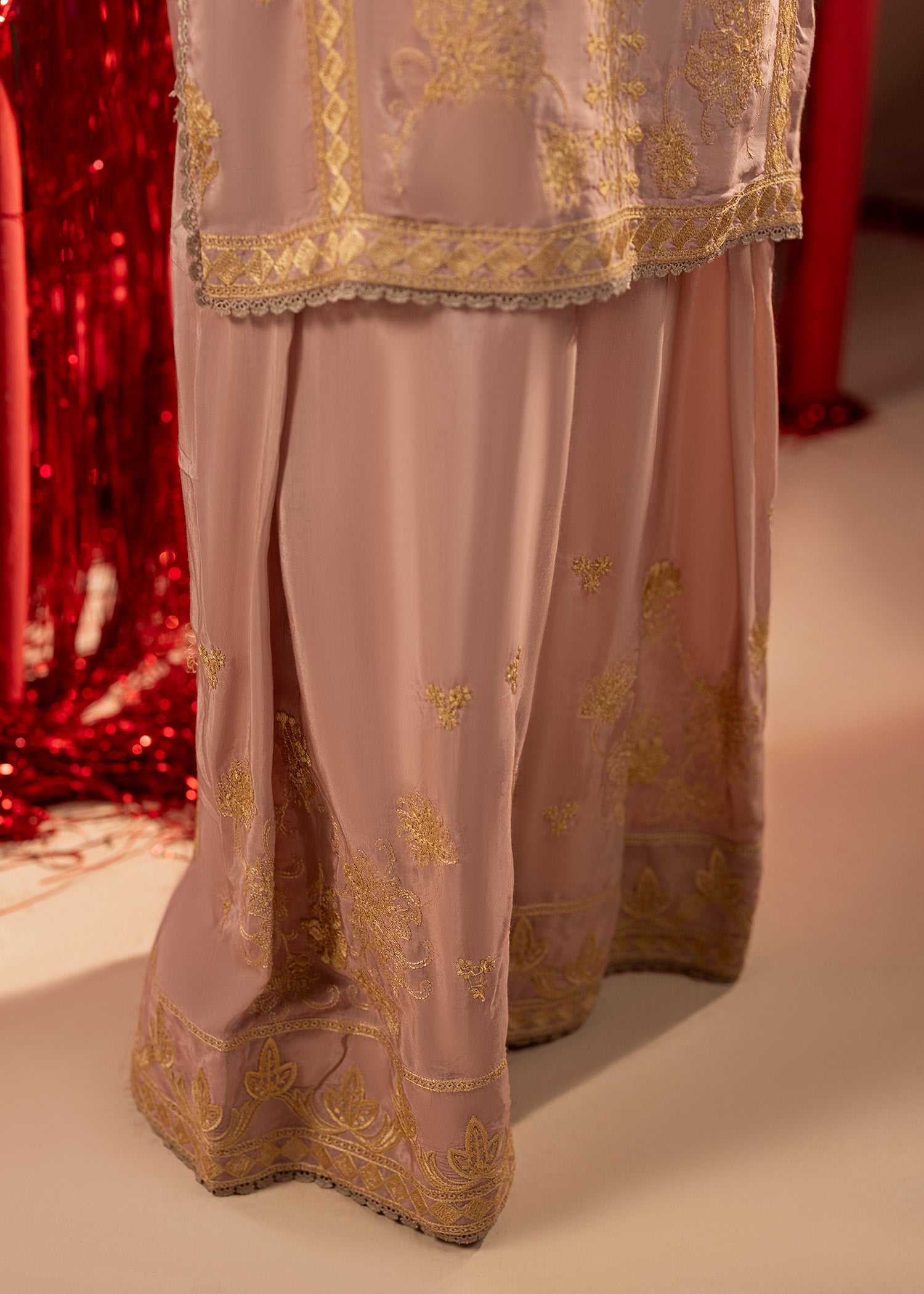 - Trousers: Embroidered Bell Bottom Silk