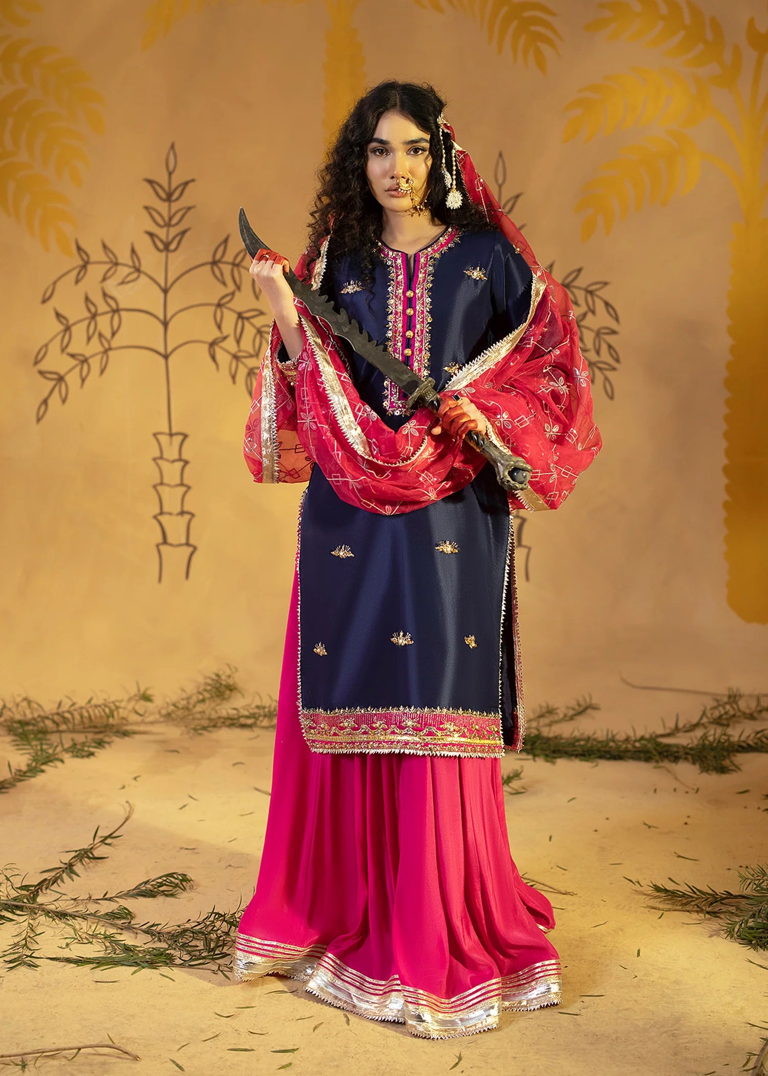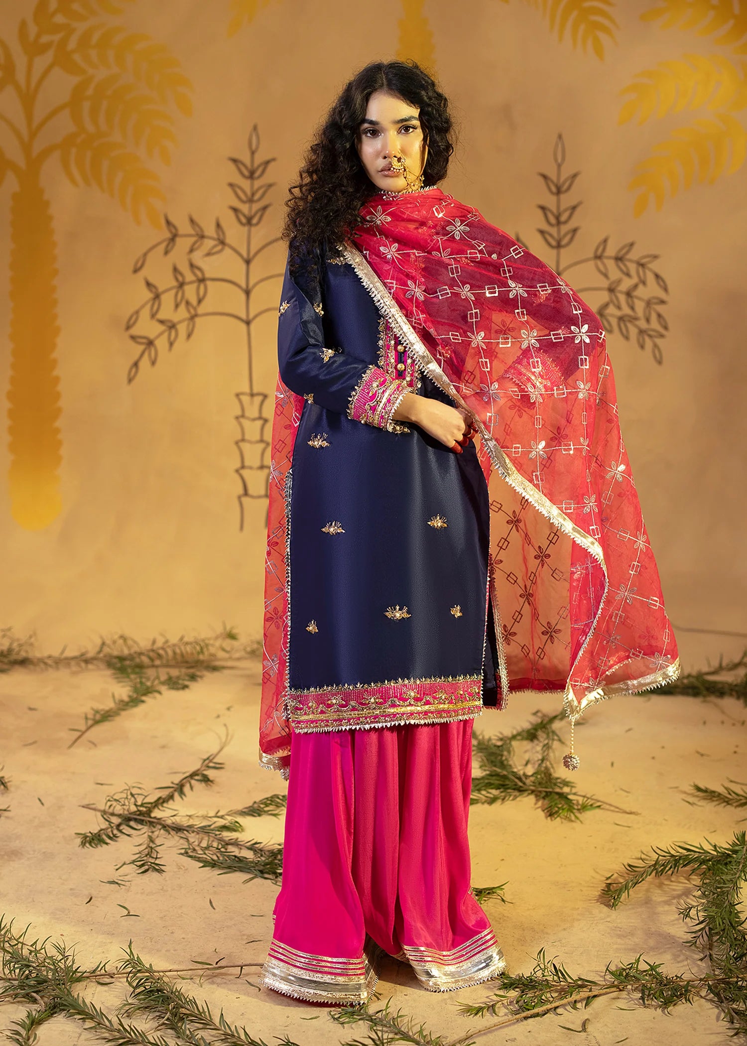 Kurta with Embrodery front back with trouser
